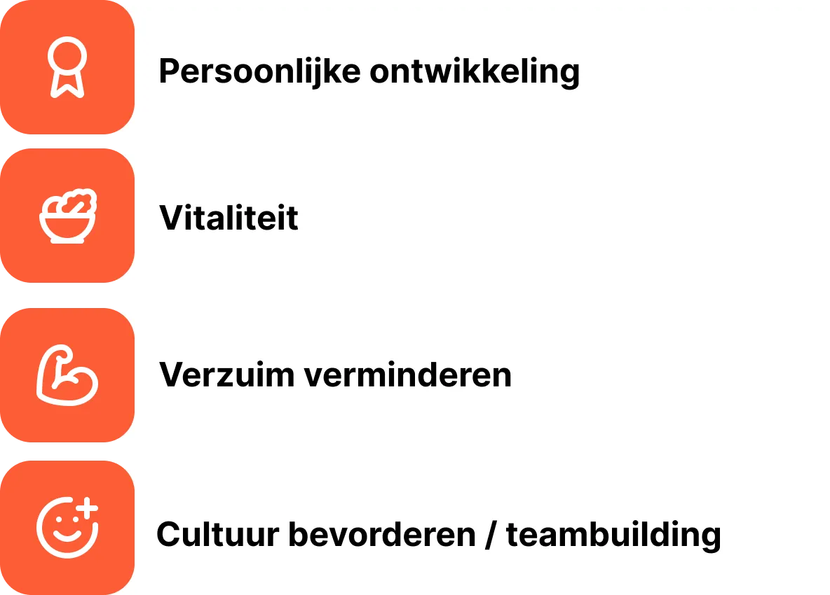 Je kunt belonen op basis van gedrag, (team)prestatie, betrokkenheid en persoonlijke ontwikkeling. Zo is altijd een reward die past, op elk moment van het jaar, voor iedere medewerker.